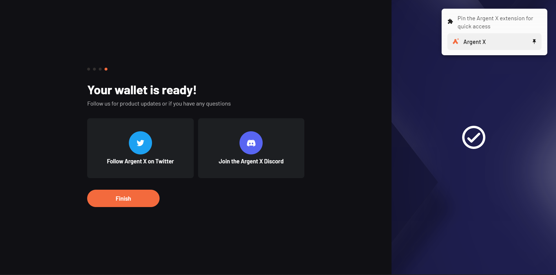 <figure><img src="https://4274982886-files.gitbook.io/~/files/v0/b/gitbook-x-prod.appspot.com/o/spaces%2FnsPor4FRAEB97AaSdxfJ%2Fuploads%2FtehLvmU3AW62rKAy4KCT%2Fimage.png?alt=media&#x26;token=52c040f8-87c0-4ec5-8404-b7d0ac3580c3" alt=""><figcaption><p>Argent X browser extention</p></figcaption></figure>